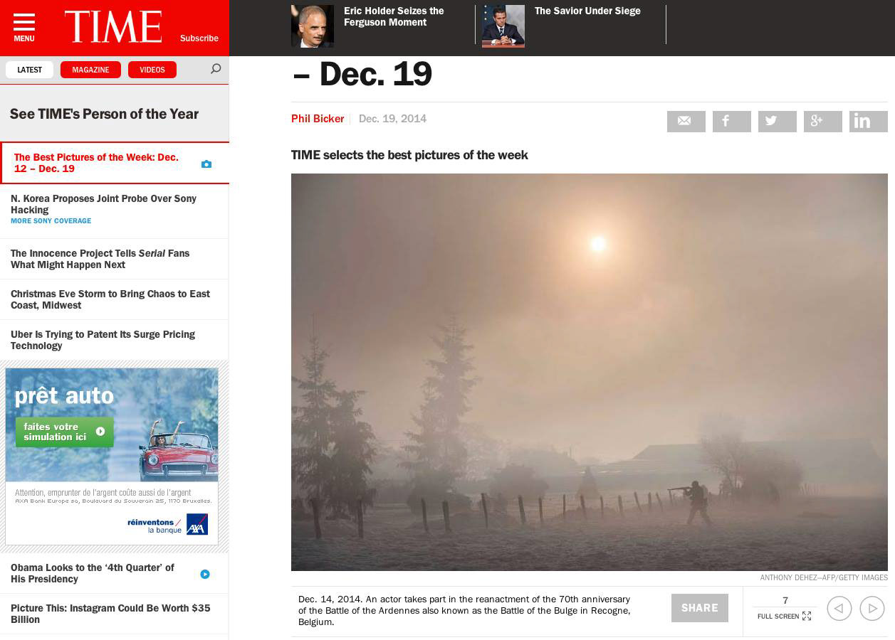 Publication on light box in TIME 19 december 2014